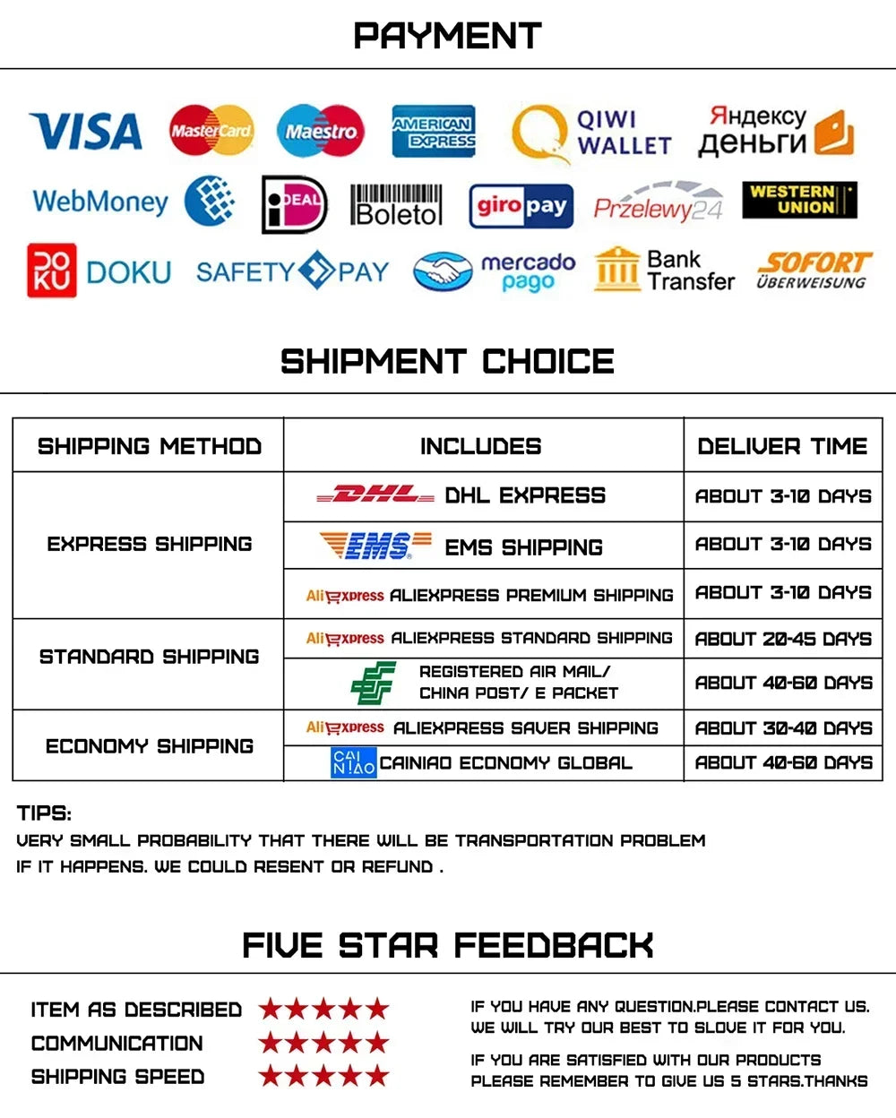 We accept a variety of payment methods, including major credit cards (Visa, MasterCard, American Express), PayPal, and other secure online payment options. Rest assured, your payment information is handled with the utmost security.